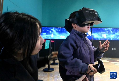 1月13日,小朋友在河北博物院数字互动体验展中体验。(新华社发 陈其保 摄)