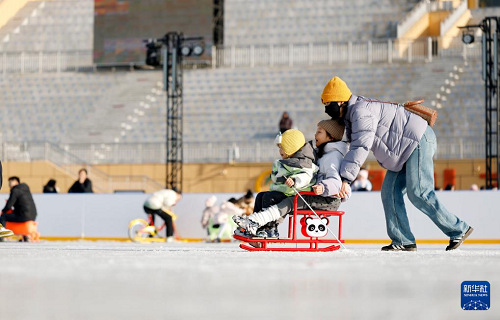 1月17日,人们在银川文旅集团览山公园落日冰场玩耍。(新华社记者 王鹏 摄)