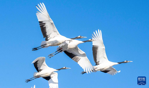 1月22日在黑龙江扎龙国家级自然保护区拍摄的丹顶鹤。(新华社发 何华文 摄)