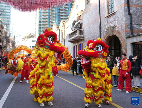 2月8日在张园拍摄的舞狮表演。(新华社记者 刘颖 摄)