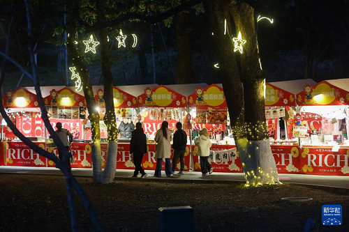 2月23日,人们在超山风景名胜区夜游专场消费市集游览。(新华社记者 徐昱 摄)