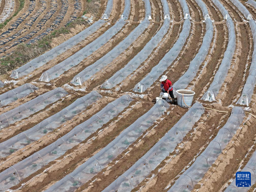 初春时节,广西南宁市邕宁区蒲庙镇村民忙着春耕春管,田园里一派繁忙景象。