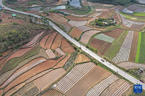 3月1日,村民在广西南宁市邕宁区蒲庙镇田园里耕作(无人机照片)。(新华社记者 周华 摄)