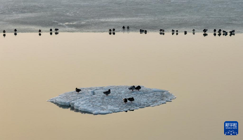近日,大批候鸟飞抵松花江哈尔滨段江面。各种候鸟在冰面上休息,在水中嬉戏、觅食,尽显春之生机。