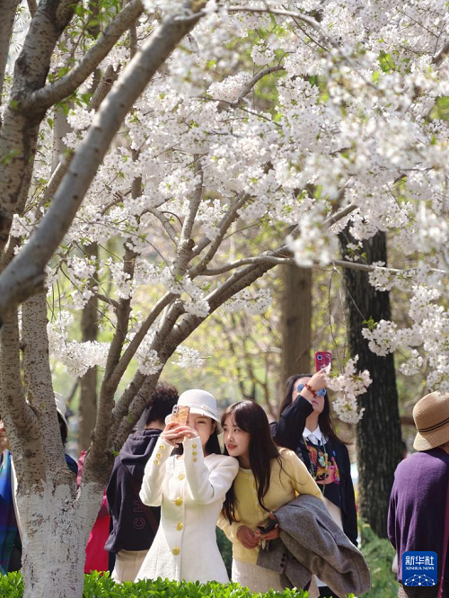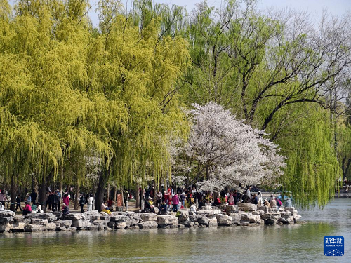 4月1日,游客在北京玉渊潭公园游览。(新华社记者 邢广利 摄)