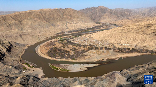 春日的宁夏中卫市南长滩村,黄河水蜿蜒流淌,岸边绿芽初绽,村里梨花竞相开放,勾勒出一幅生机盎然的黄河春景图。