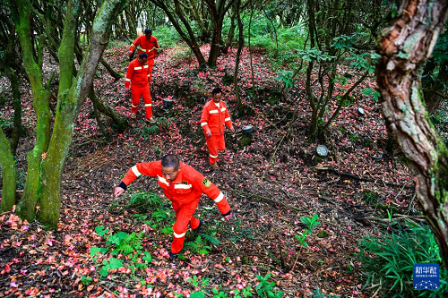 森林防火队员们在贵州百里杜鹃管理区金坡景区巡逻,排查森林火灾隐患(4月2日摄)。(新华社记者 杨文斌 摄)