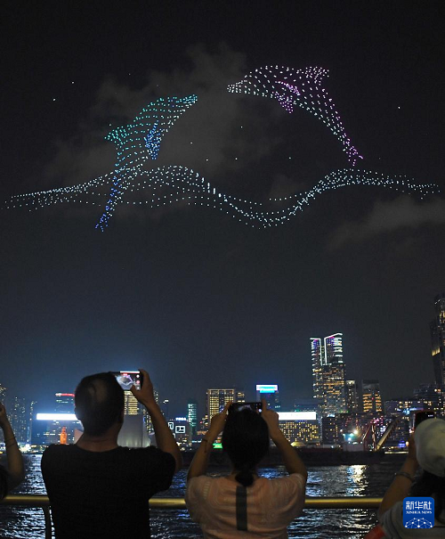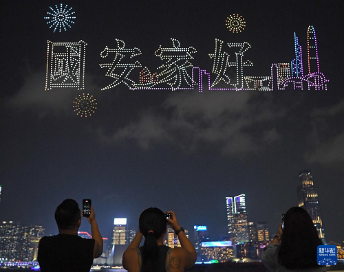 全民国家安全教育日大型无人机表演点亮香港夜空