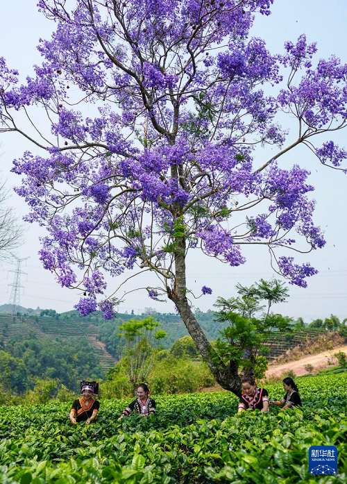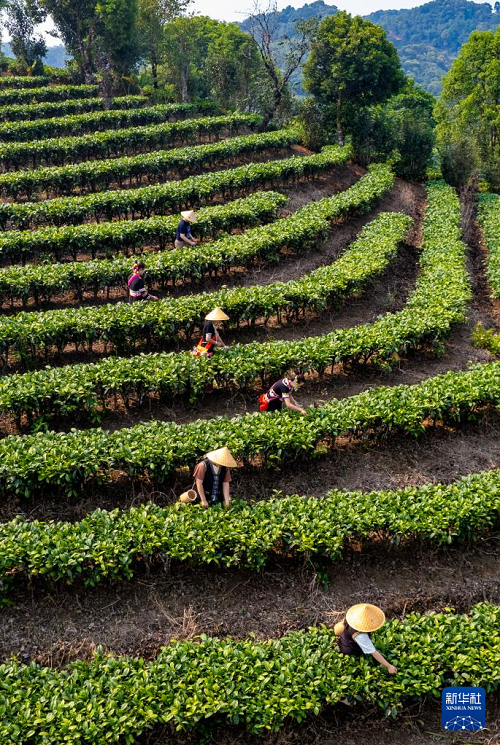 近日,云南省普洱市思茅区迎来春茶采摘季。茶农忙碌在层叠起伏的茶山间,绘就一幅春日美好画卷。