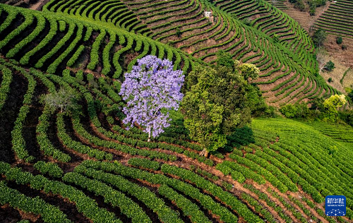 4月15日在普洱市思茅区倚象镇拍摄的茶山(无人机照片)。(新华社记者 陈欣波 摄)