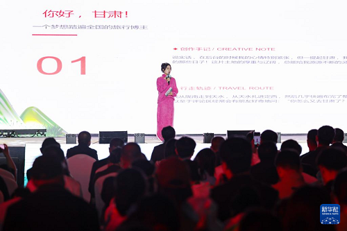 4月25日,在陇南市武都区万象街,文旅达人在启动仪式上分享甘肃文旅体验。(新华社发 侯崇慧 摄)