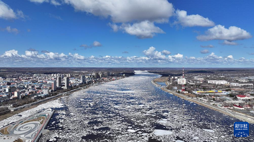 近日,中俄界江黑龙江黑河段进入春季流冰期。大量冰排浩荡而下,景象壮观。
