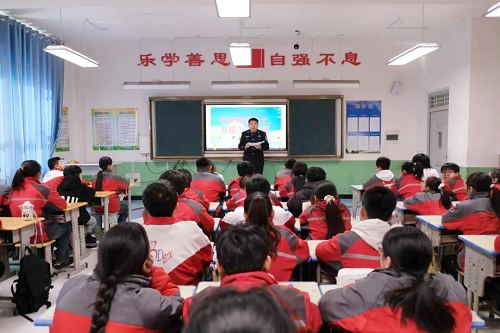 3月20日,忻州市公安局忻府分局古城派出所民警走进忻州市第八中学,以“反诈、防霸凌、禁毒”为重点,开展“最美民警进校园、法治护航开学季”活动。