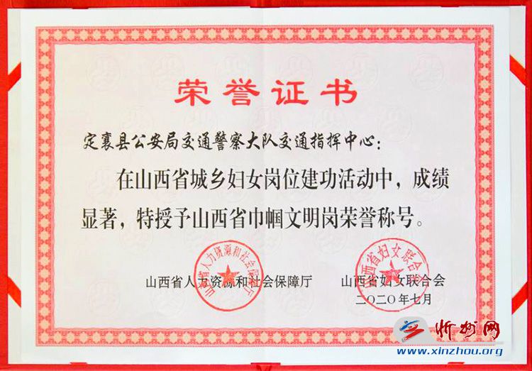 忻州网讯(通讯员:刘瑞晋)近日,定襄县公安局交警大队交通指挥中心被山西省人力资源和社会保障厅、山西省妇女联合会授予“山西省巾帼文明岗”荣誉称号。定襄交警大队把争创“巾帼文明岗”作为开展争优创先活动的一项重要举措,大队女民警、女辅警立足岗位、爱岗敬业、热情服务,发挥了重要作用,为推动定襄公安交通管理工作做出了积极贡献。