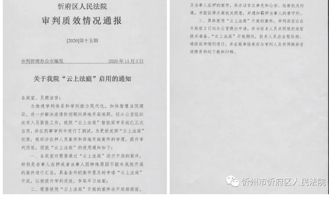截止目前,忻府区法院利用云法庭已开庭审理民事、刑事案件31件。信息化建设对审判工作的助推和保障作用充分彰显,有力的提升了审判工作质效,推动结案工作走上了快车道。