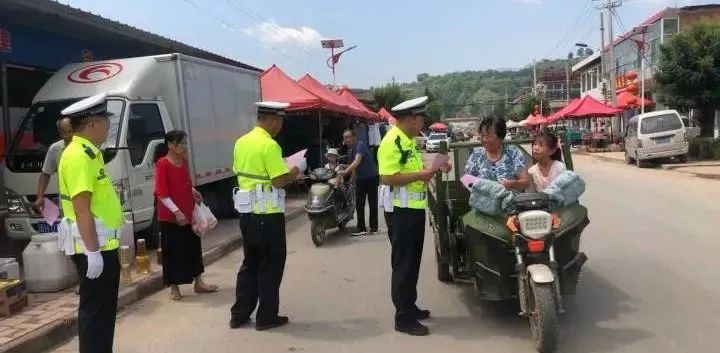 活动中,四大队交警通过在农贸市场挂条幅,主要街道对过往的三轮车驾驶员进行交通安全宣传,采取面对面讲解等方式,边发放宣传资料边用简单易懂的语言向农村群众宣传三轮车违法载人的危害性。