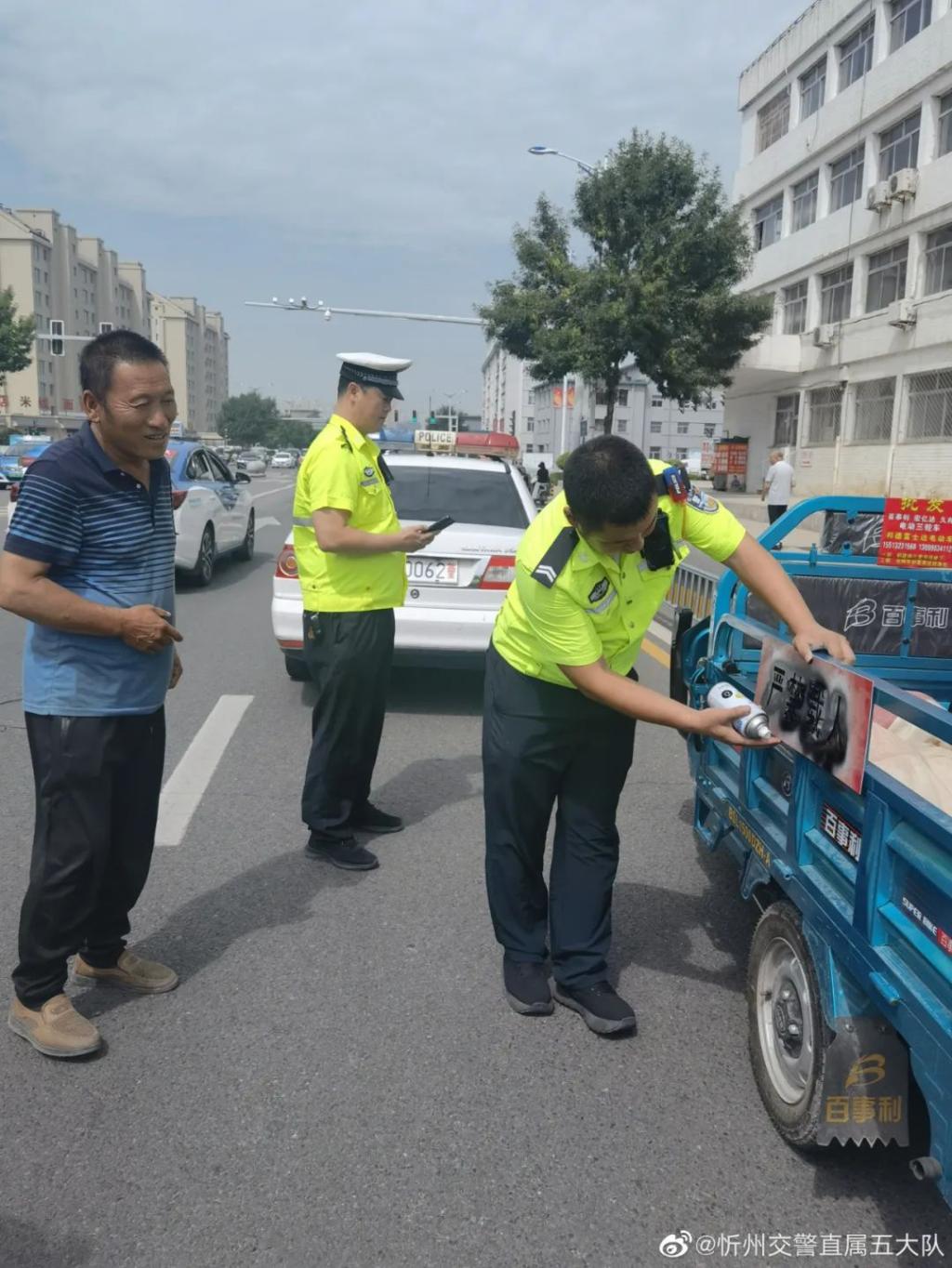 忻州市公安局交警支队古城大队扎实开展三轮车专项整治行动。行动中,民警对三轮汽车,二轮及三轮摩托车、电动三轮车、三轮老年代步车、快递行业三轮车等重点车辆违法载人、超员、人货混装、无牌无证、不戴安全头盔、逆向行驶等交通违法行为进行查处。