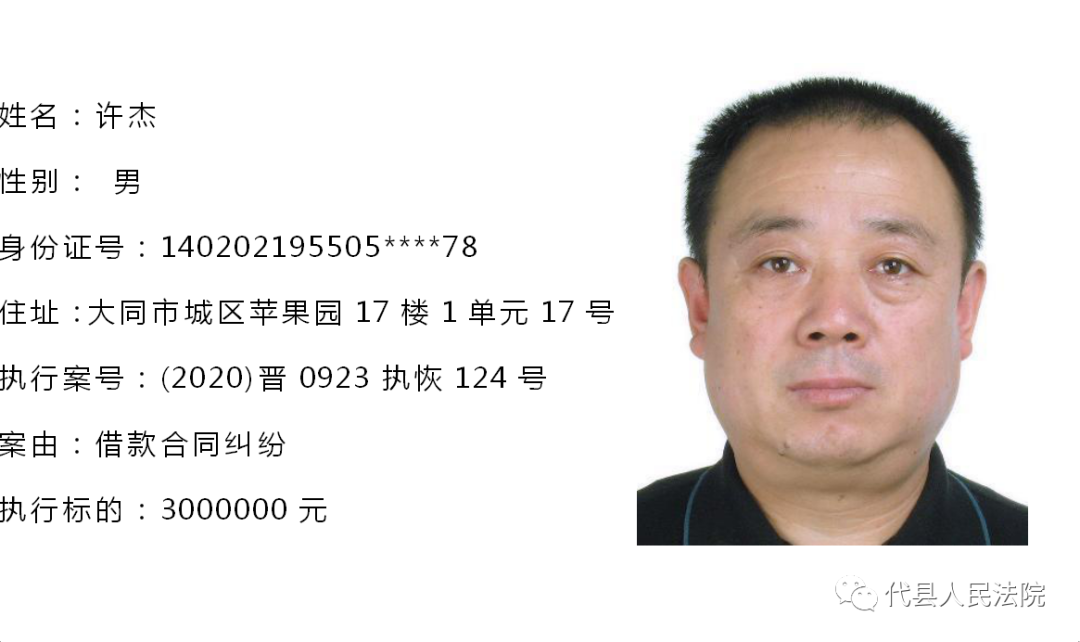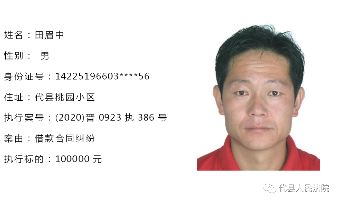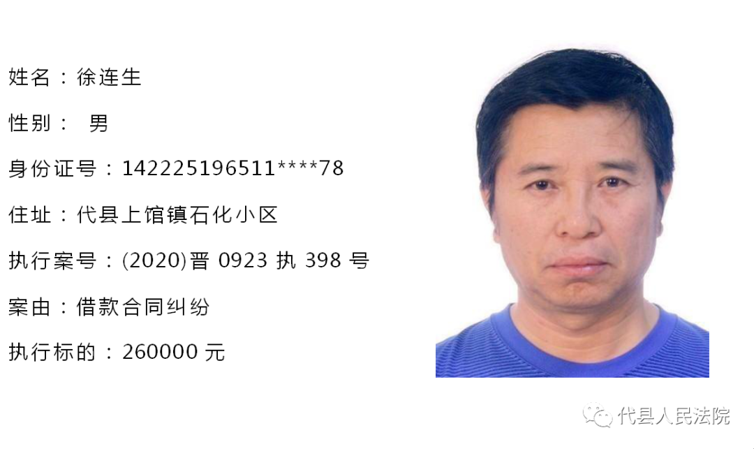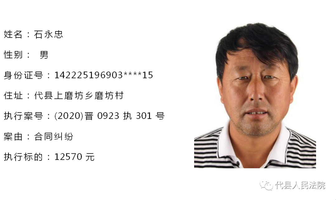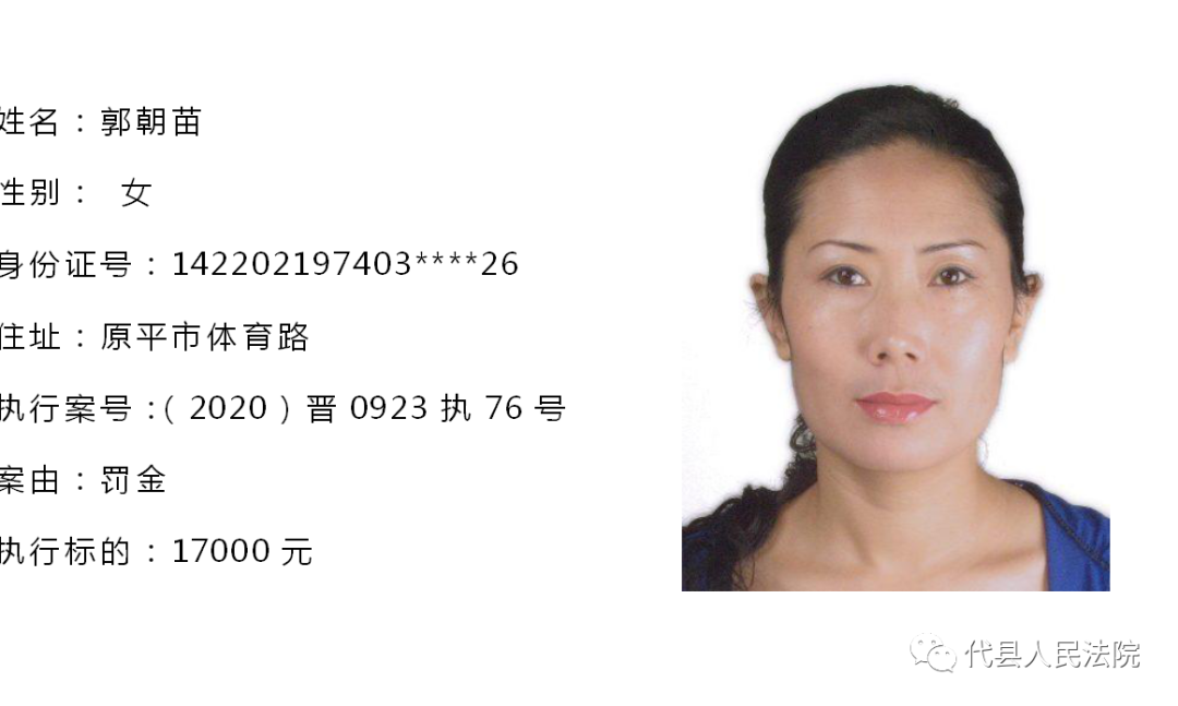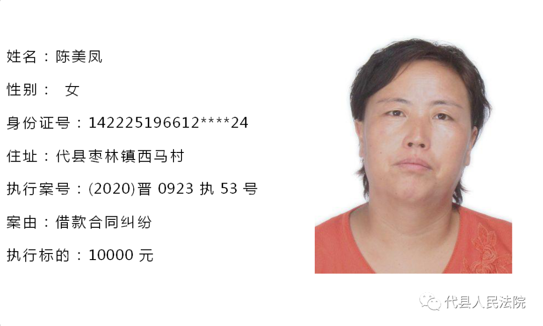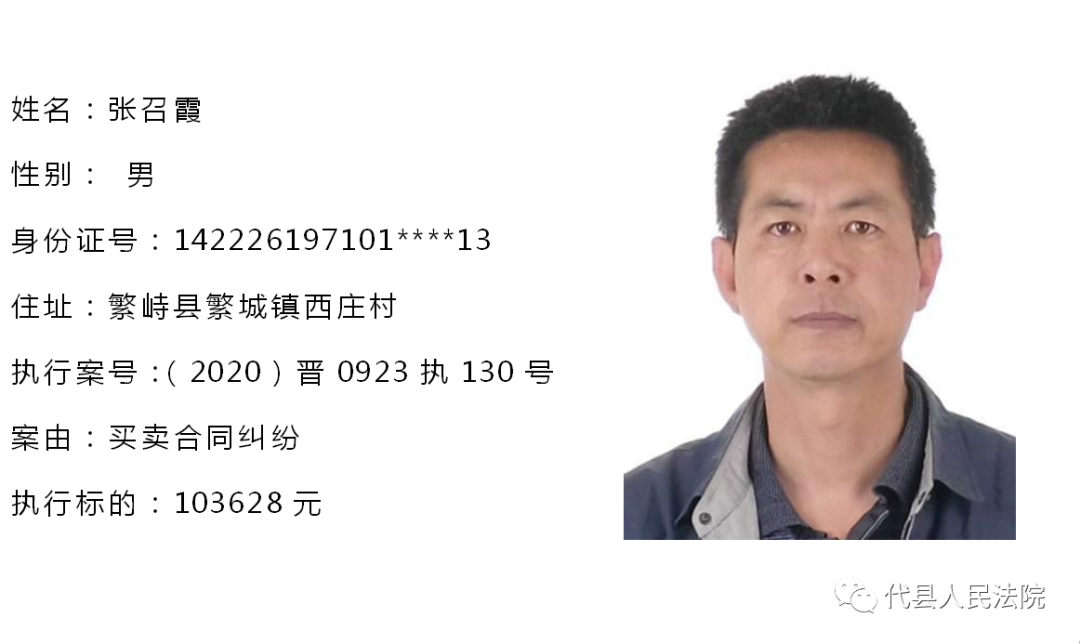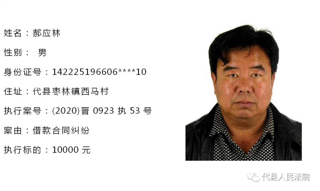 为促使被执行人自觉履行生效法律文书确定的义务,推进社会信用体系建设,根据《中华人民共和国民事诉讼法》第二百五十五条、《最高人民法院关于公布失信被执行人名单信息的若干规定》第七条之规定,现将代县法院拒不履行生效法律文书的被执行人公布如下,责令其立即向执行法院履行义务。对涉嫌拒不执行法院判决、裁定犯罪的被执行人,将依照《中华人民共和国刑法》第三百一十三条之规定,严肃追究其刑事责任。