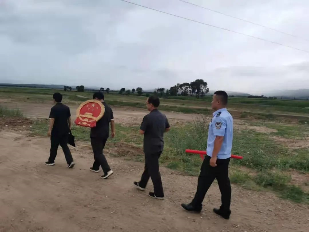 在村干部和村民们的热情帮助下,奇村法庭在村委大院拉横幅、挂国徽、摆桌椅,布置起一个简单开放的庭审现场。