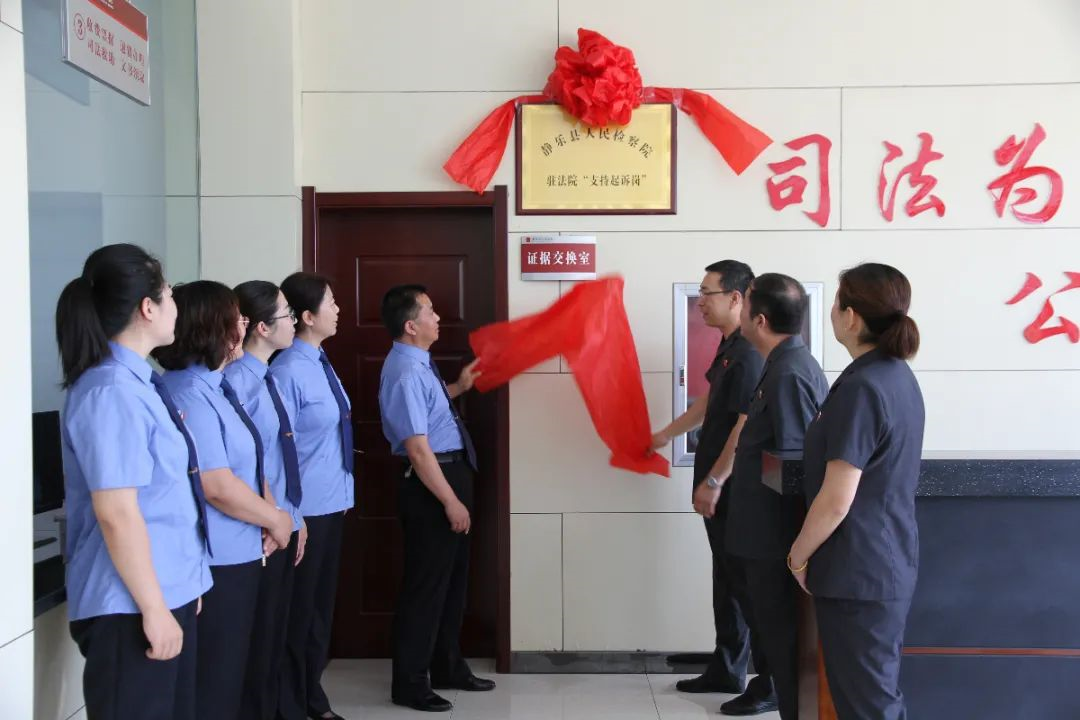 2021年8月20日,我院党组书记、检察长李冰与县法院党组书记、院长吕建文共同为静乐县人民检察院驻法院“支持起诉岗”牌匾揭牌,通过在县法院立案大厅悬挂岗位牌匾,设立检察机关支持起诉窗口,摆放支持起诉知识手册,让群众直观的了解检察机关支持起诉检察职能。