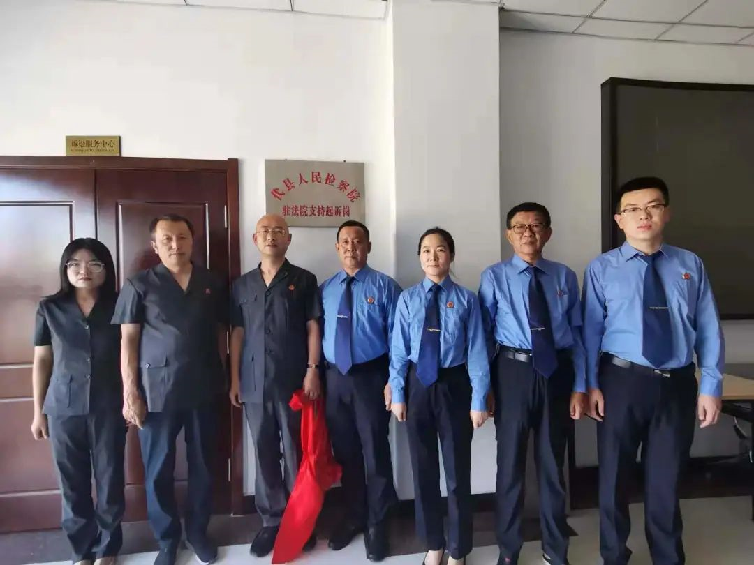 为进一步推进支持起诉岗工作,充分发挥检察机关参与化解社会矛盾和强化法律职能,深化“我为群众办实事”活动,切实维护落实群众合法利益,近日,代县检察院和代县法院就检察机关驻法院“支持起诉岗”的设立举行揭牌仪式。我院党组副书记、副检察长刘卫平,代县法院党组副书记、副院长赵建新,共同为“代县人民检察院支持起诉岗”进行揭牌。