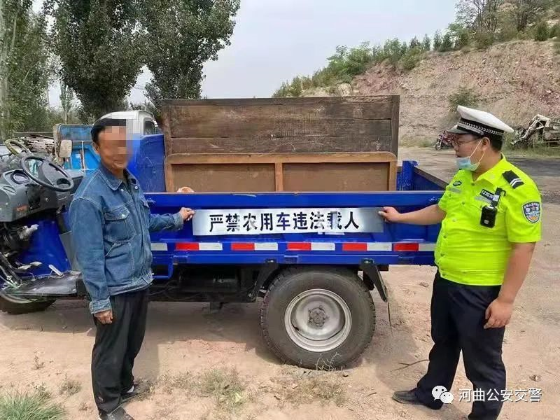 河曲交警持续在辖区开展农用三轮车违法载人专项整治行动,对违法载人做到“零容忍”态度,发现一起、查扣一起、处罚一起。同时行动中大队抽调优势警力,坚持固定检查与流动巡逻相结合勤务模式,民警不仅在给查处的三轮车两侧喷涂“严禁载人”警示标识,而且在查处违法的同时做好说服教育工作,大力宣传三轮车违法载人等交通违法行为的安全隐患和严重后果,提高群众交通安全意识,使群众自觉遵守和抵制三轮车违法载人行为。