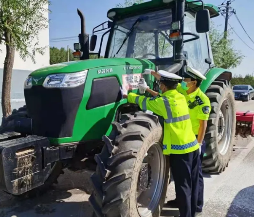 民警在拖拉机车身喷涂“严禁载人”宣传警示语,并责令驾驶人当场签订承诺书,保证此后不再违法载人。