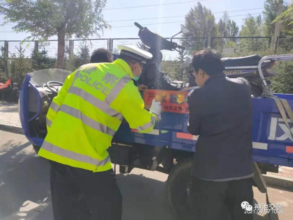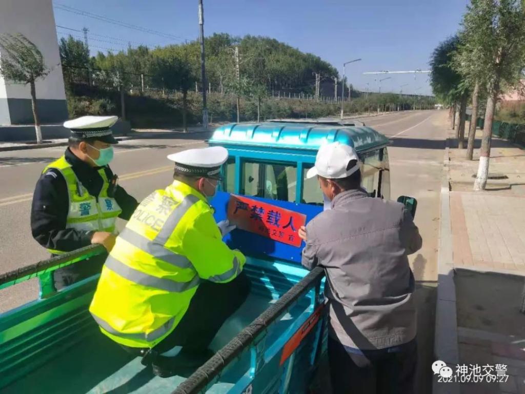 交警大队持续开展三轮车违法载人整治行动,采取流动式巡逻执勤,对存在农用三轮车违法载人行为的,执勤民警劝阻车上的人员下车,向他们耐心讲解农用三轮车违法载人的危害,并在三轮车车身上喷涂“严禁载人”的宣传警示语,填写承诺书。