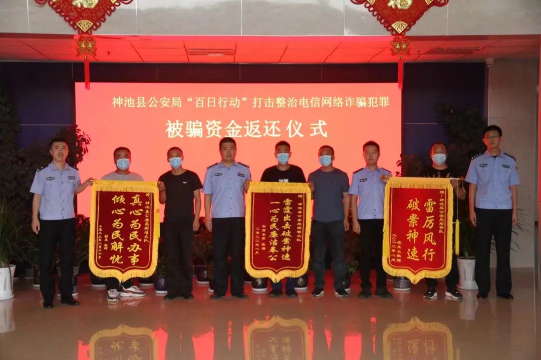 8月21日,神池县公安局举行“百日行动”打击整治电信网络诈骗犯罪被骗资金返还仪式,为受骗群众返还资金49万余元。