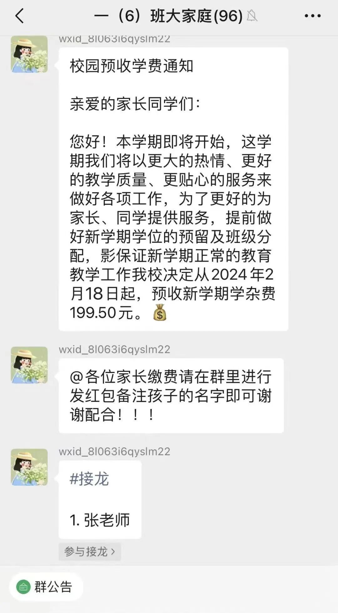 注意:家长在收到班级群发的缴费信息时,不要急于汇款,一定要通过电话向老师核实清楚缴费情况。同时,老师要开启入群验证功能,避免陌生人随意加入群聊。