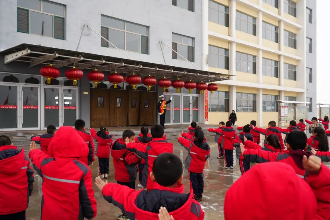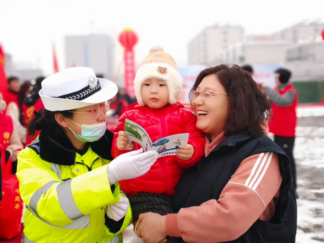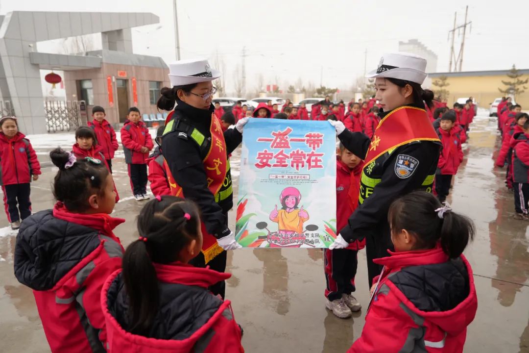 活动中民辅警通过演示交通手势指挥操,展示“一盔一带”交通安全海报,发放交通安全宣传彩页等形式,使学生们理解并熟记基本的交通安全知识,增强自身“知危险、会避险”的能力,做到遵章守法,文明出行。