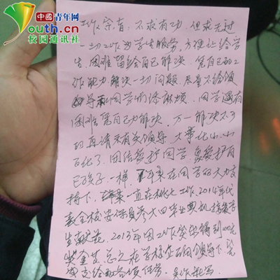 吴作社亲笔书写下的工作宗旨。中国青年网通讯员 韦琪 供图