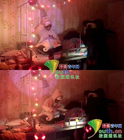 图为女生在宿舍唱Rap表演。化梦蕊 供图