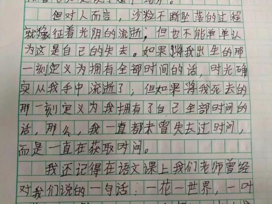 简单来说,在这位小学生的眼中,人越活时间越多。是这样吗?看完这篇作文,批改中的王老师就陷入了思考,所以将这段文字晒在了微博上。