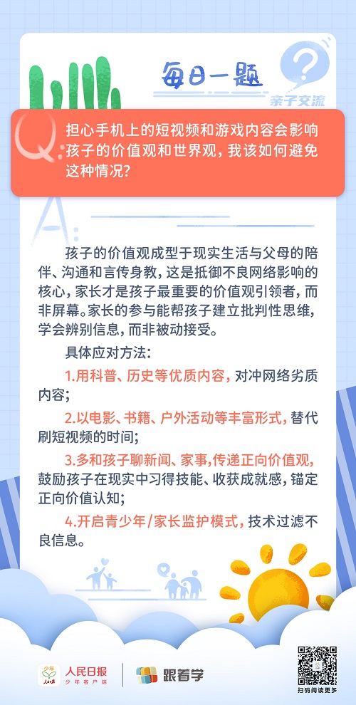 每日一题丨家长该如何避免手机上的内容影响孩子的价值观和世界观?