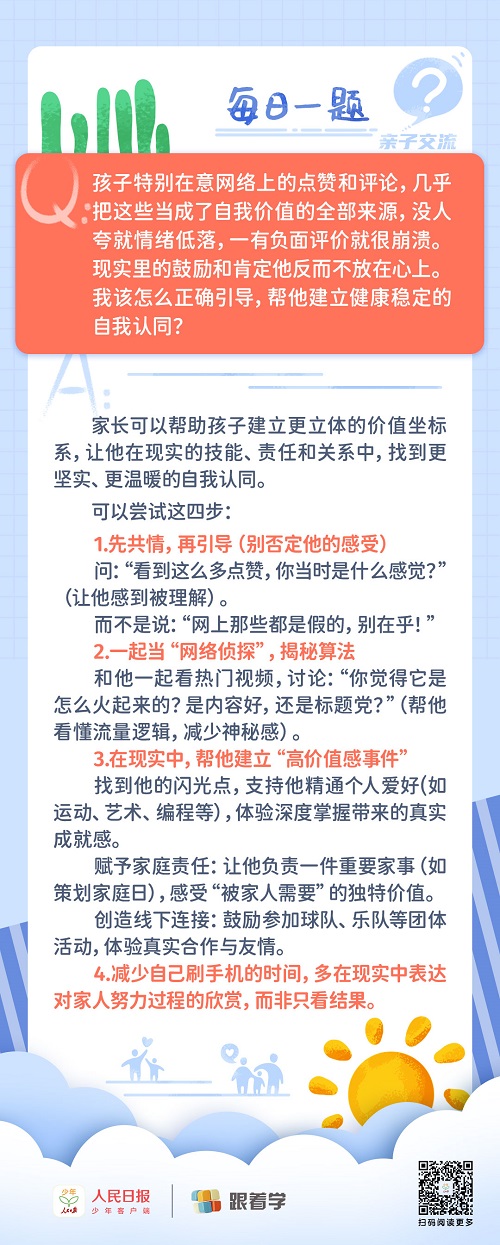 每日一题丨孩子过度依赖网络点赞、评论来获得自我认同,家长该如何正确引导?