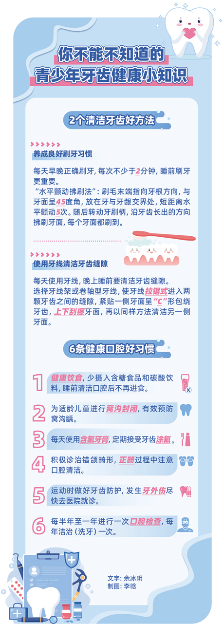 2022年9月20日是第34个“全国爱牙日”,今年的爱牙日主题为“口腔健康 全身健康”,副主题是“护牙健齿少年强 健康中国民族兴”,并发布《青少年口腔健康核心信息》。青少年口腔健康正在成为社会共同关注的问题。