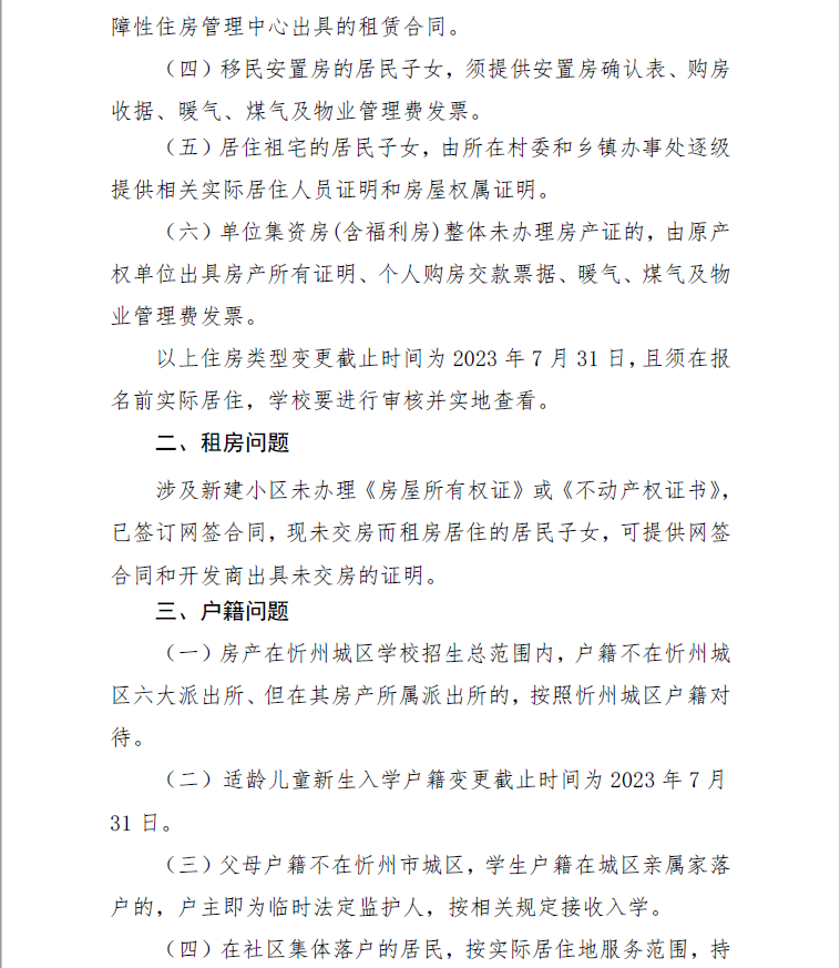 附:忻州市城区义务教育学校入学报名有关房屋所有权证、户籍、征迁房、扶贫移民安置房子女等情况的说明