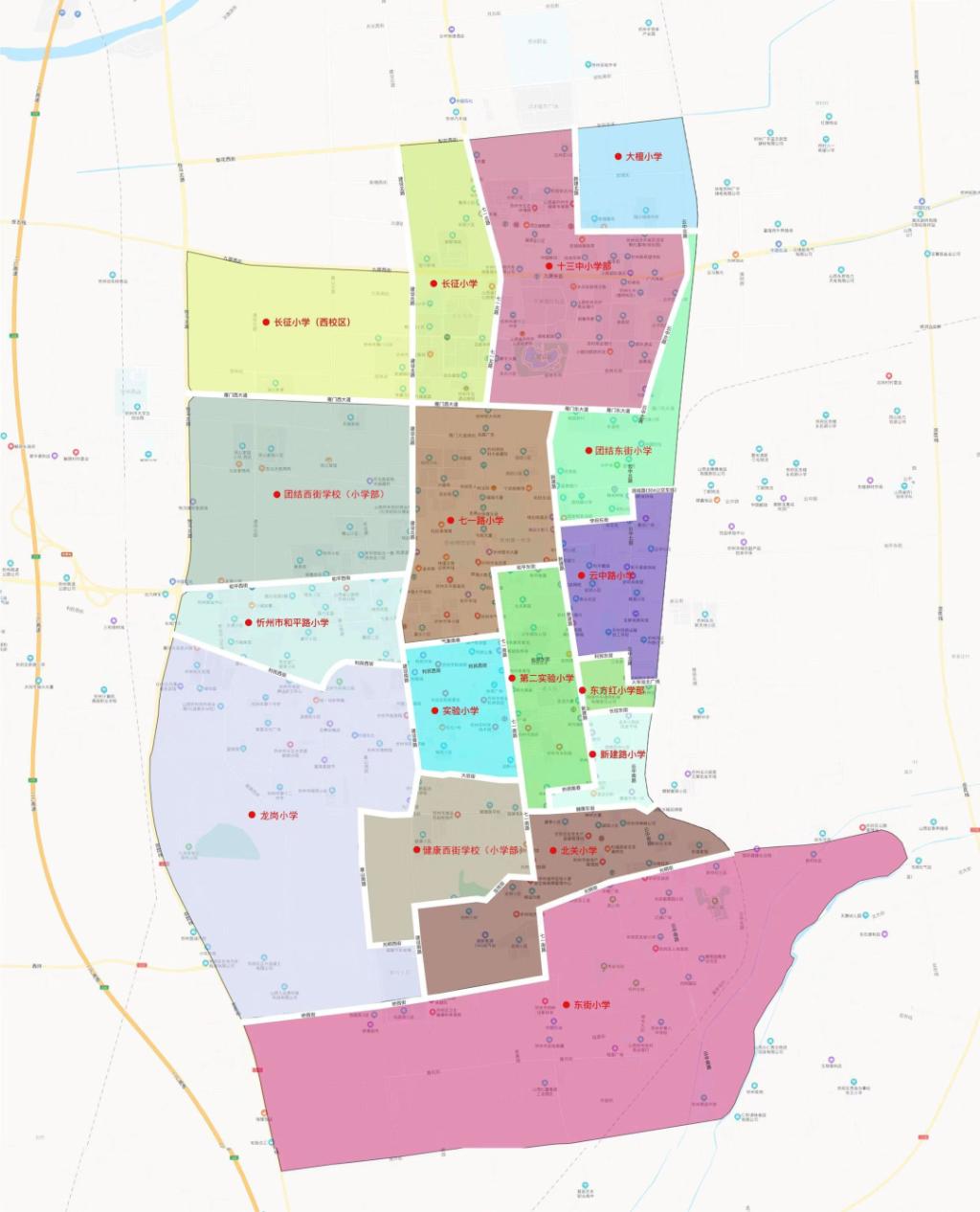 忻州市城区小学学校服务范围图