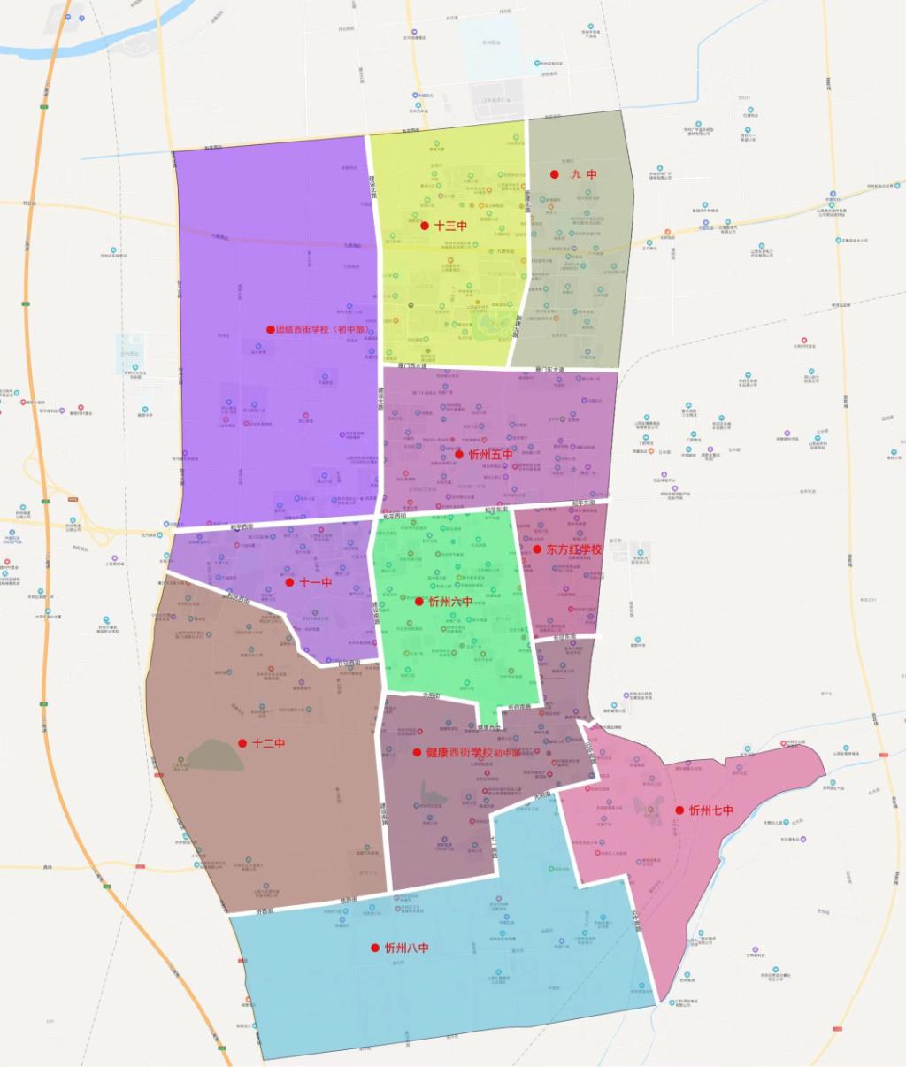 忻州市城区初中学校服务范围图