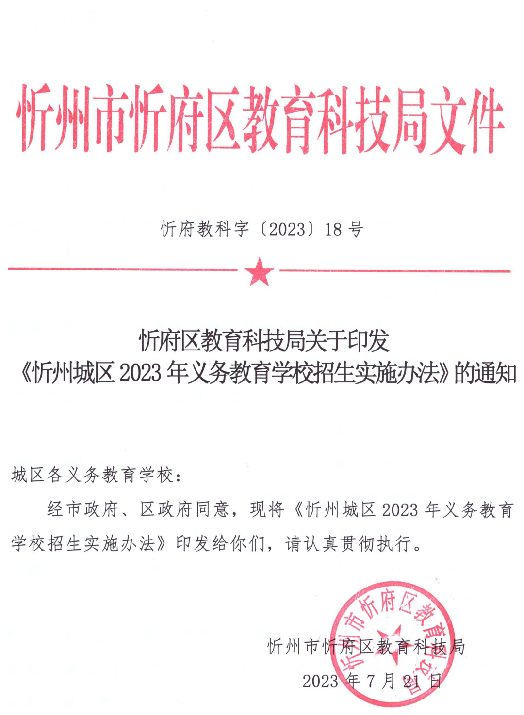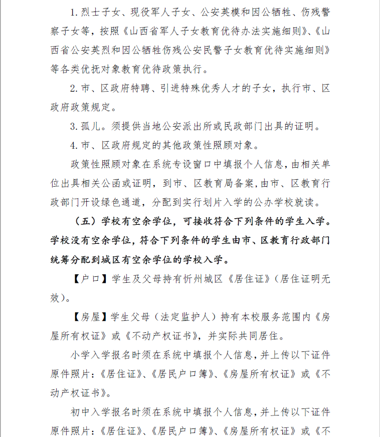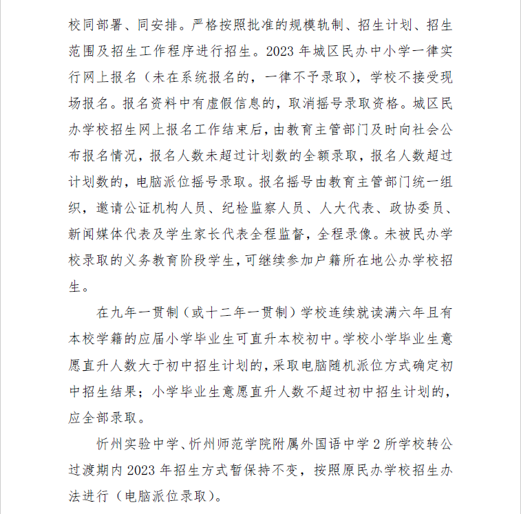 (四)8月8日,忻州市教育局统一组织忻州市北方中学、忻州现代双语学校、忻州市康乐小学、忻州师范学院附属外国语中学、忻州实验中学五所学校进行摇号,并及时公布录取结果。8月9日至10日,办理入学手续。