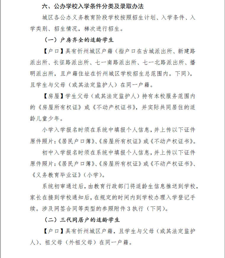 (二)坚持公办学校“就近、划片、免试、分配”,民办学校严格按照招生计划、招生时间、招生方式进行统一招生