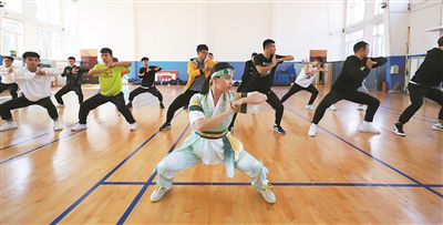 图为延边大学体育学院学生在练习武术。 新华社记者 雒圆摄