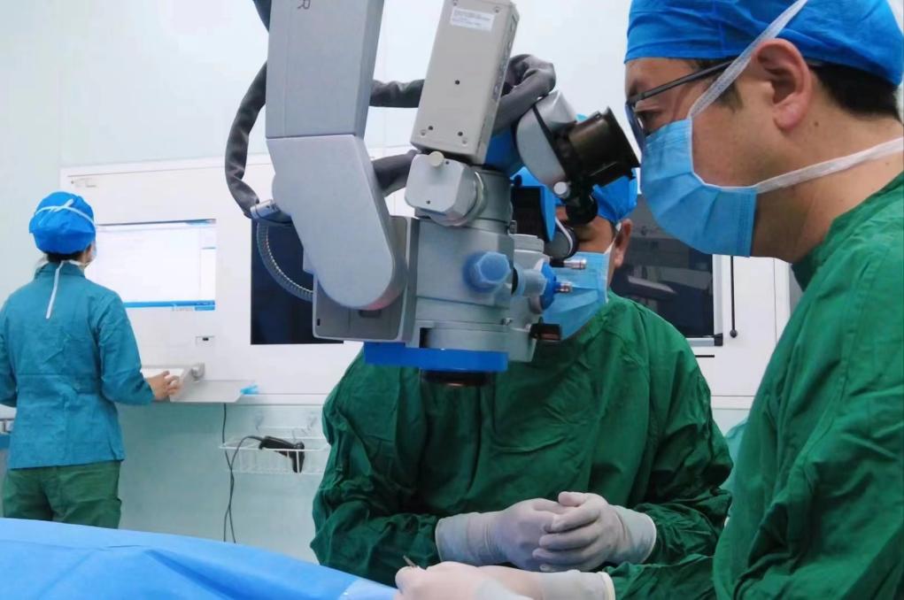 2024年2月19日,青海省人民医院眼科副主任医师祁恩在为青光眼患者手术。(受访者供图)