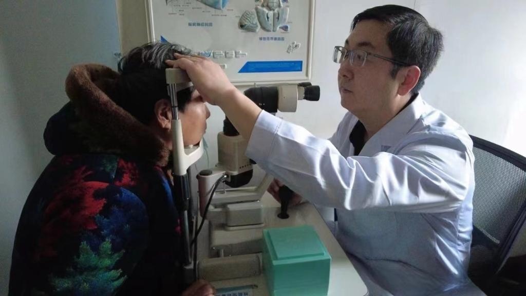 2024年2月20日,青海省人民医院眼科副主任医师祁恩在为患者诊疗。(受访者供图)