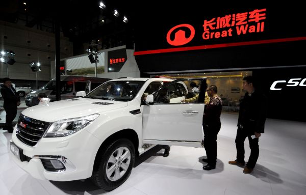 参观者在车展上参观展出的长城汽车。