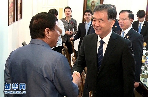 3月17日,菲律宾总统杜特尔特在达沃市会见在菲律宾进行正式访问的中国国务院副总理汪洋。