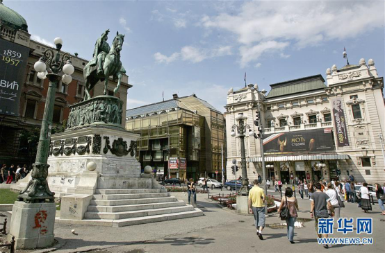塞尔维亚米哈伊洛王子纪念碑和国家剧院(新华网发)