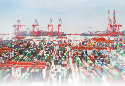 洋山深水港四期无人码头集装箱堆场。 新华社记者 方 喆摄