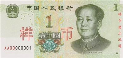 1元纸币,正面左侧增加面额数字白水印,取消左下角装饰纹样。